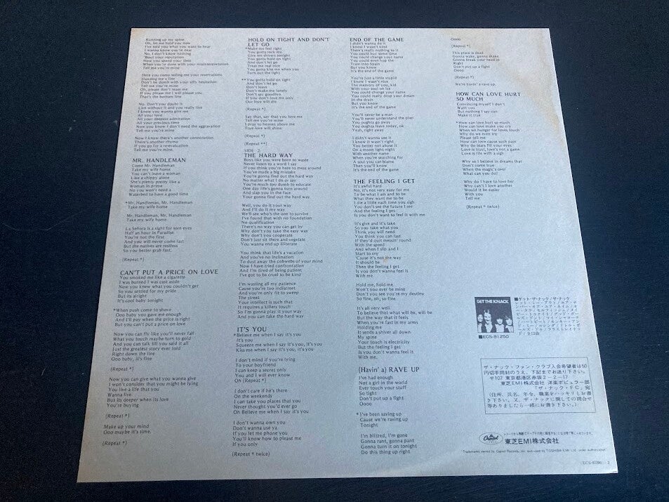 In de hoes zit een insert van één pagina met info over Knack in het japans plus alle songteksten in het engels. Deze insert ziet er nog zeer goed uit.