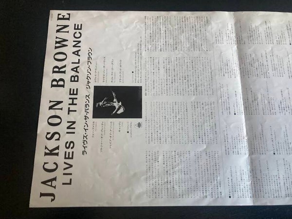 Het album “Lives In The Balance” van Jackson Browne uit Japan met OBI en insert, uitgebracht in 1986.