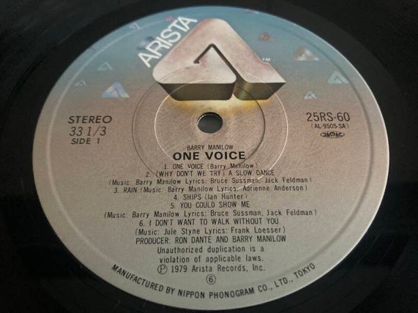 Het album “One Voice” van Barry Manilow uit Japan met OBI, originele innersleeve en 2 inserts, uitgebracht in 1979.