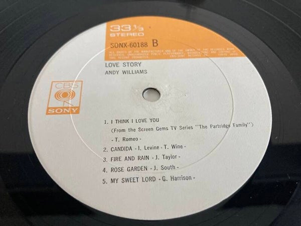 Het album “Love Story” van Andy Williams uit Japan met insert, uitgebracht in 1971.