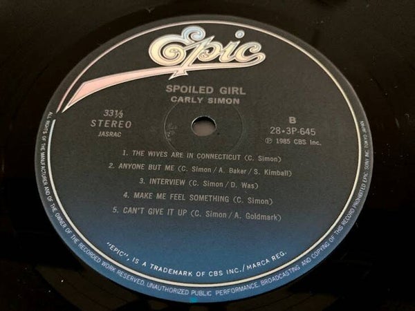 Het album “Spoiled Girl” van Carly Simon uit Japan met OBI en insert, uitgebracht in 1985.