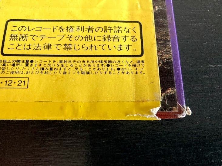 De hoes heeft een beetje ringwear en lichte schade aan de onderkant (zie fotos) maar ziet er verder nog zeer goed uit. De OBI zit om de hoes heen en zit niet aan de hoes vast. De OBI heeft een kleine scheur aan de achterkant (zie fotos) maar ziet er verder nog perfect uit.