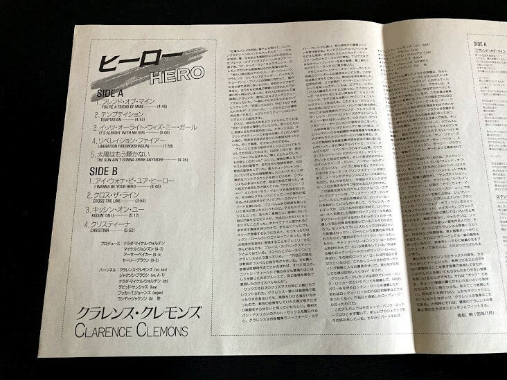 Het album “Hero” van Clarence Clemons uit Japan met OBI en insert, uitgebracht in 1985.