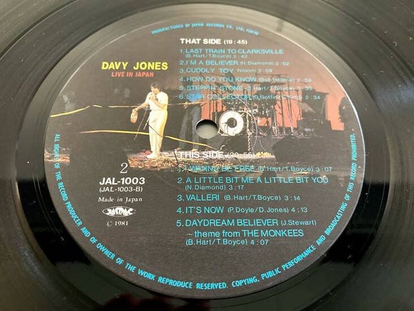 Het album “Live in Japan” van Davy Jones uit Japan met OBI en insert, uitgebracht in 1981.