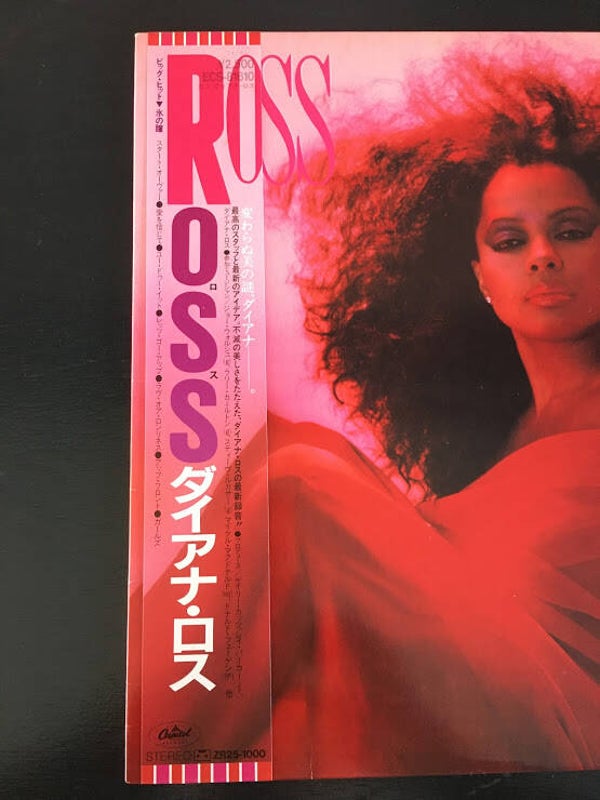 Het album “Ross” van Diana Ross uit Japan met OBI en insert. De hoes ziet er zeer goed uit, de OBI zit om de hoes heen en is in perfecte staat. De OBI zit niet aan de hoes zelf vast dus kan verschoven worden. In de hoes zit een insert van twee pagina’s met de songteksten in het engels en het japans. Binnenin de insert staat nog info in het japans. De insert ziet er nog perfect uit. Het vinyl zit in een plastic innersleeve en ziet er nog zeer goed uit.