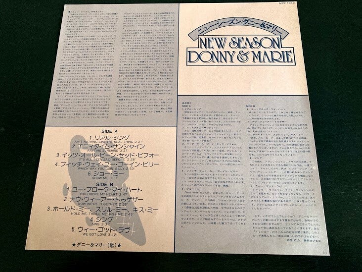Donny & Marie Osmond "New Season" PROMO LP uit Japan