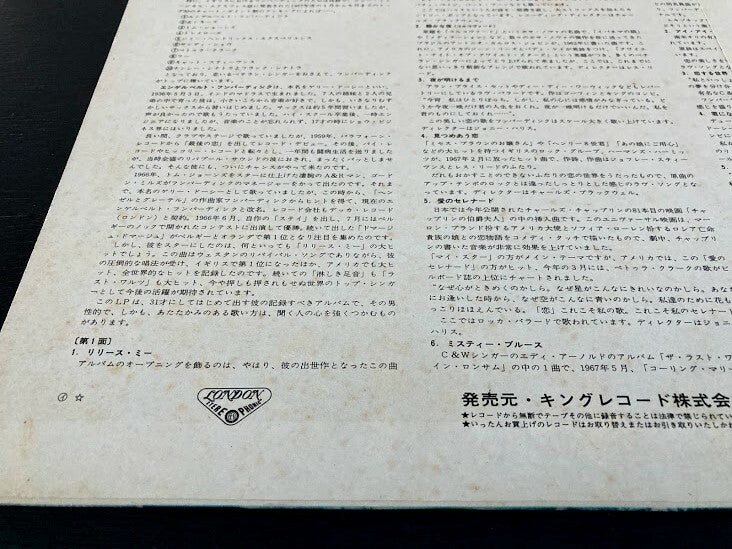 Het album “Release Me” van Engelbert Humperdinck uit Japan met OBI en insert, uitgebracht in 1967.