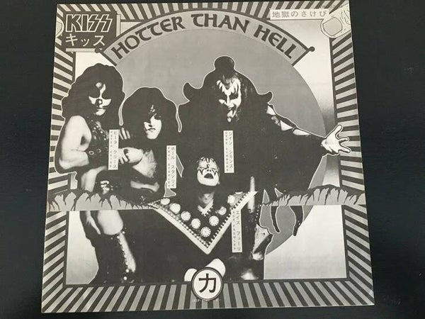 Het album “Hotter Than Hell” van KISS uit Japan met insert. Het gaat hier om de eerste persing op het zogenaamde ‘blue label’. De hoes ziet er perfect uit. In de hoes zit een insert van twee pagina’s met de songteksten in het engels en japans. De insert is nog in goede staat, in het midden (binnenin) de insert zitten wat vlekken (zie fotos). Ook staat er hier en daar wat cijfers op de insert geschreven. Het vinyl zit in een plastic innersleeve en ziet er nog zeer goed uit.