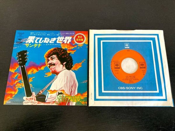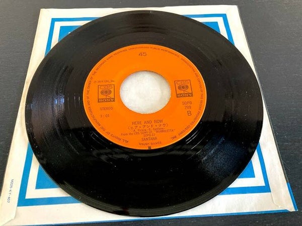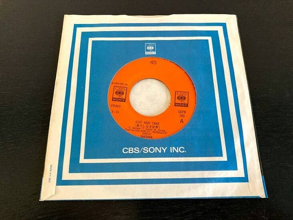 De single “Give and Take / Here and Now” van Santana uit Japan, uitgebracht in 1974. Het gaat hier om de originele eerste release van de Japanse single met originele insert.