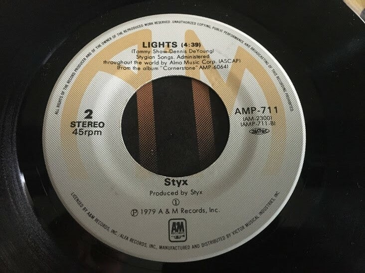 De single “The Best of Times / Lights” van Styx uit Japan, uitgebracht in 1980. Het gaat hier om de originele (eerste) release van de japanse single met originele insert (van 2 pagina’s) en innersleeve. Origineel zit in de innersleeve een insert met de voorkant hoes van de single. De insert zit nu voor de innersleeve in een plastic hoes. Op de voorkant van de insert staat de voorkant van de hoes, aan de binnenkant van de insert staan de songteksten van The Best of Times en Lights in het engels en in het japans. De insert ziet er nog perfect uit. De innersleeve en het vinyl zien er ook nog perfect uit.