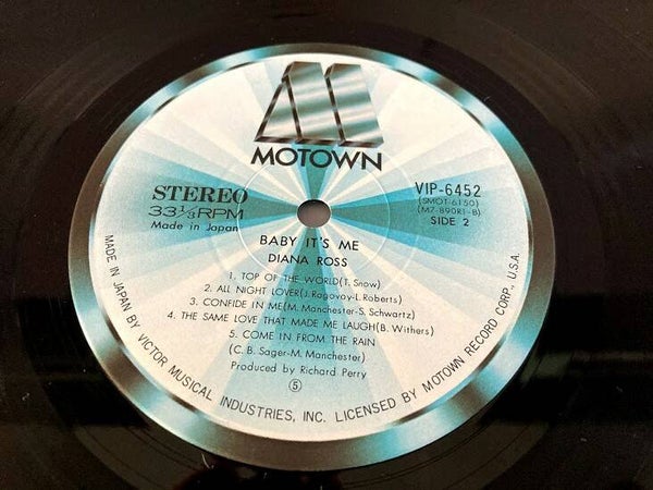 Het album “Baby, It’s Me” van Diana Ross uit Japan met OBI en insert, uitgebracht in 1977. De hoes heeft schade aan de rechterhoeken (zie fotos) verder ziet de hoes er nog perfect uit. De OBI zit om de hoes heen en zit niet aan de hoes vast. De OBI ziet er nog perfect uit. In de hoes zit een insert van één pagina met info over Diana Ross plus alle songteksten in het engels. Deze insert ziet er nog perfect uit. Tevens zit de originele innersleeve er nog bij. Deze heeft wat schade aan de onderkant en aan de zijkant - zie fotos. Verder ziet de innersleeve er nog zeer goed uit. Het vinyl zit een plastic innersleeve en ziet er nog perfect uit.