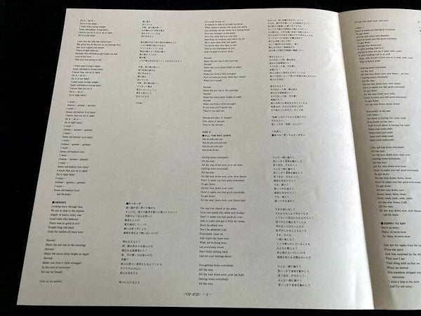 Eén van één pagina met info over The Commodores in het japans. En een insert van vier pagina’s met de songteksten in het engels in het japans. Deze inserts hebben allebei bruine vlekken (zie fotos) maar zien er beide nog zeer goed uit.