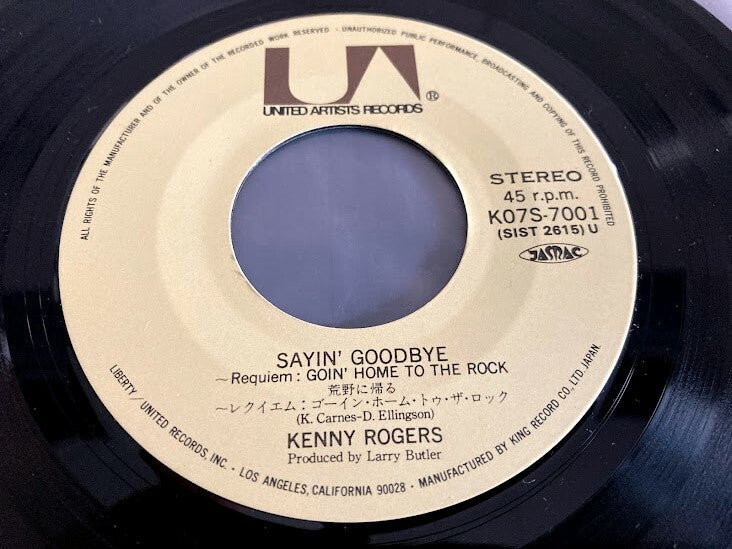 De single “Love The World Away / Sayin’ Goodbye”” van Kenny Rogers uit de film Urban Cowboy uit Japan met fotohoes en insert, uitgebracht in 1980.