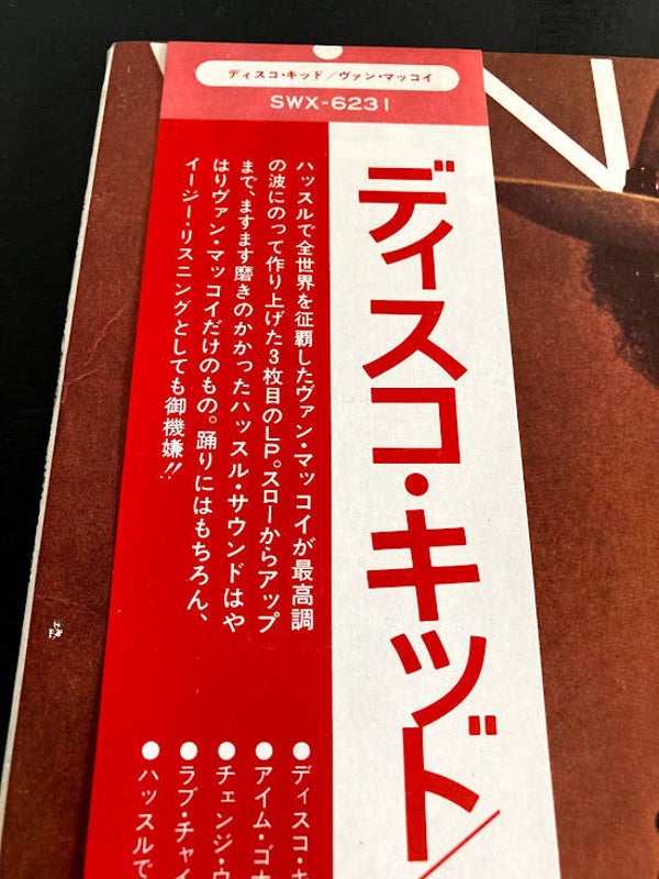 Het album “The Disco Kid” van Van McCoy uit Japan met OBI en insert, uitgebracht in 1975.