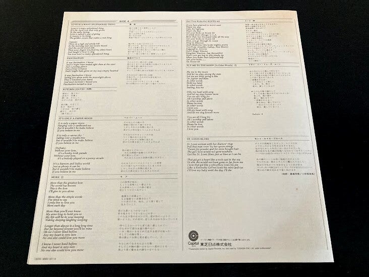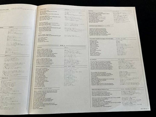 In de hoes zit een insert van vier pagina’s met alle songteksten in het engels en in het japans. Deze insert is een beetje verkleurd aan de achterkant (zie fotos) maar ziet er verder nog perfect uit.