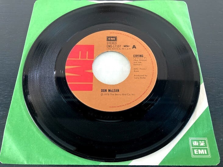 De single “Crying / Genesis (In The Beginning)” van Don McLean uit Japan, uitgebracht in 1978. Het gaat hier om de originele (eerste) release van de Japanse single met originele insert.