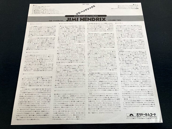 Het album “The Essential Hendrix volume 2” van Jimi Hendrix uit Japan met OBI en insert, uitgebracht in 1979.