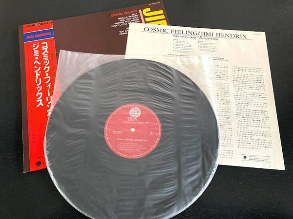 Het album “Cosmic Feeling” van Jimi Hendrix uit Japan met OBI en insert, uitgebracht in 1981.