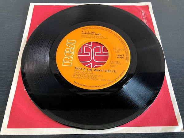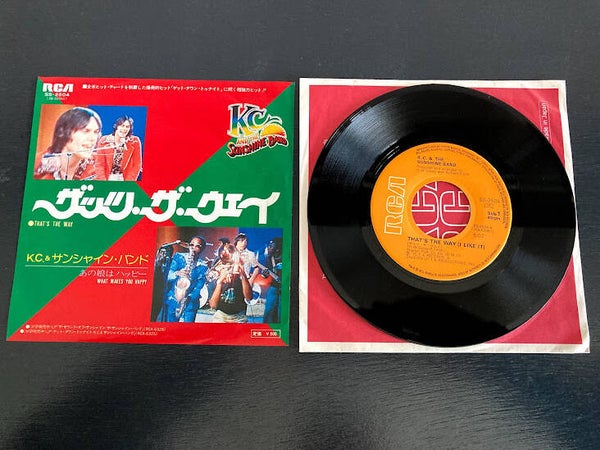 De single “That’s The Way (I Like It) / What Makes You Happy” van K.C. & The Sunshine Band uit Japan, uitgebracht in 1975. Het gaat hier om de originele (eerste) release van de Japanse single met originele insert.
