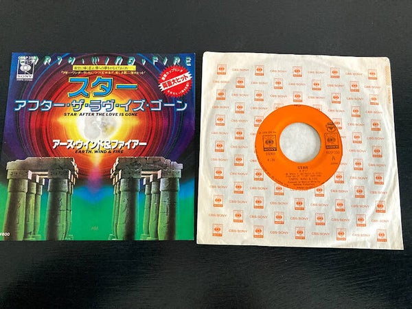 De single “Star / After The Love Is Gone” van Earth, Wind & Fire uit Japan, uitgebracht in 1979. Het gaat hier om de originele (eerste) release van de Japanse single met originele insert.
