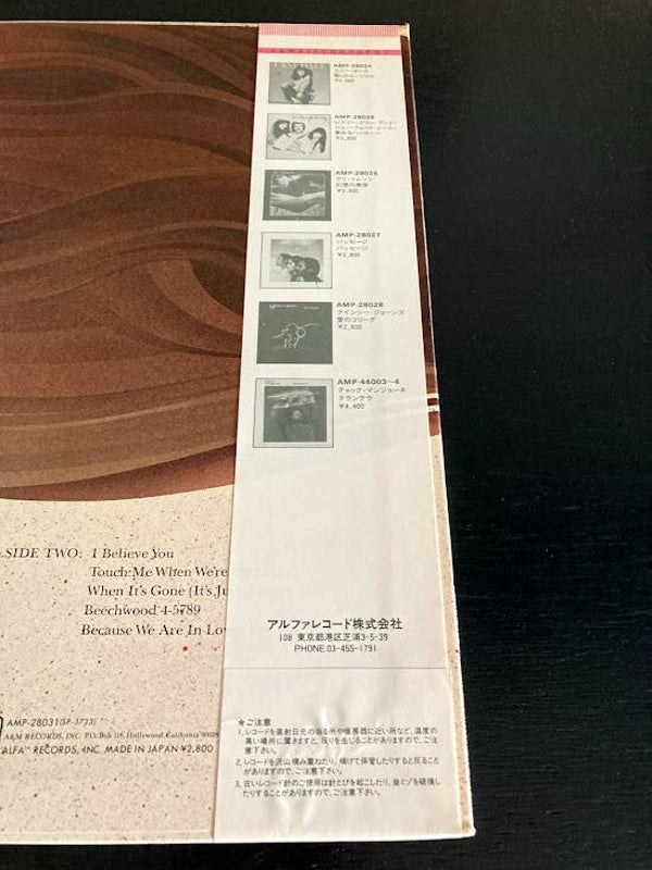 In de hoes zit een insert van vier pagina’s met info over The Carpenters in het japans plus alle songteksten in het engels en in het japans. Deze insert ziet er nog perfect uit.
