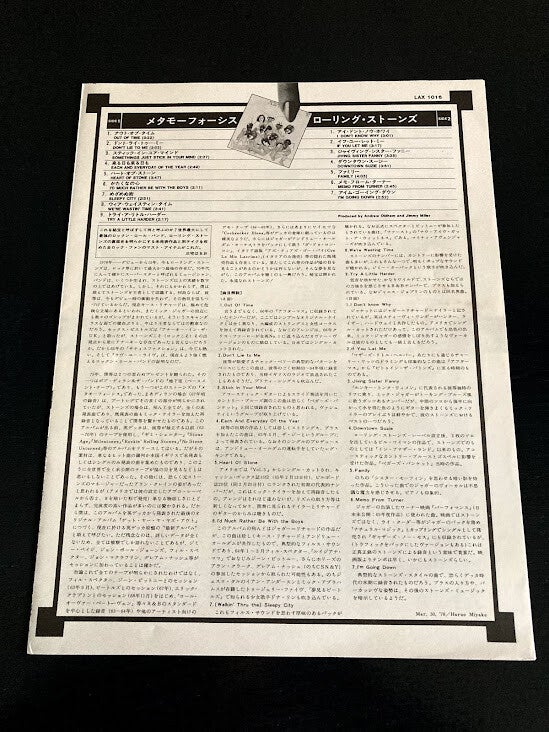 Het album “Metamorphosis” van Rolling Stones uit Japan met OBI en insert, uitgebracht in 1976.