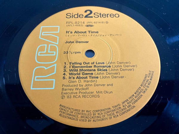 Het album “It’s About Time” van John Denver uit Japan met OBI en insert, uitgebracht in 1983.