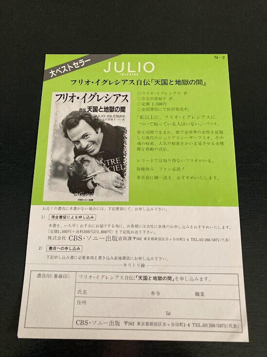 In de hoes zit een insert van acht pagina’s met info over Julio Iglesias in het japans plus alle songteksten in het japans. Deze insert ziet er nog perfect uit.