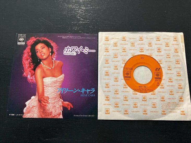 De single “Why Me? / Talk Too Much” van Irene Cara uit Japan, uitgebracht in 1983. Het gaat hier om de originele (eerste) release van de Japanse single met originele insert.