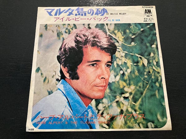 De single “The Maltese Melody / I’ll Be Back” van Herb Alpert & The Tijuana Brass uit Japan, uitgebracht in 1970. Het gaat hier om de originele (eerste) release van de Japanse single met originele insert.