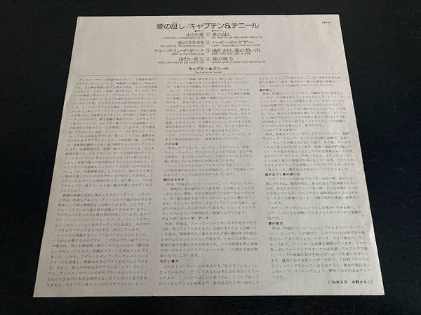 In de hoes zit een insert van één pagina met info over Captain & Tennille in het japans plus alle songteksten in het engels. Deze insert ziet er nog perfect uit.
