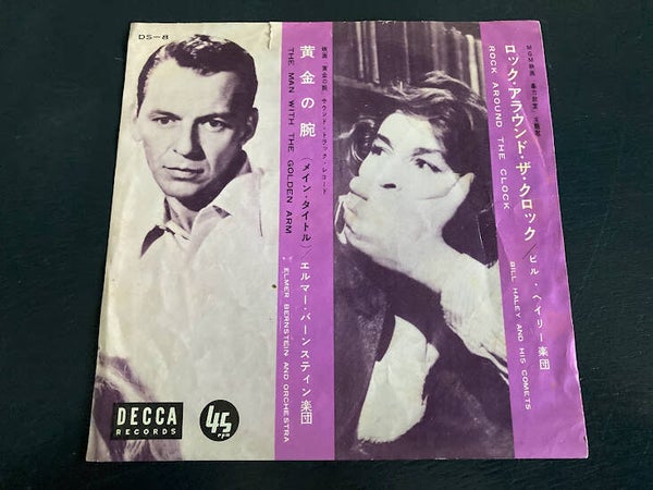 De single “Rock Around The Clock / The Man With The Golden Arm” van Bill Haley And His Comets en van Elmer Bernstein and Orchestra uit Japan, uitgebracht in 1955. Het gaat hier om de originele (eerste) release van de Japanse single met originele insert.