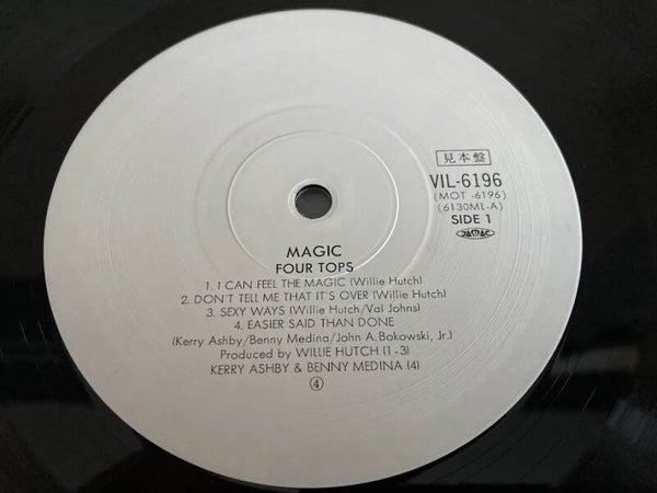 Het album “Magic” van Four Tops uit Japan met OBI en insert, uitgebracht in 1985. Het gaat hier om de promo, die niet te koop is geweest in de winkel. Het label is wit (anders dan de ‘gewone’ release) en er staan drie japanse tekens op het label (zie fotos), deze betekenen ‘promo’. Over de bovenkant van de hoes zit ook nog een promo sticker.