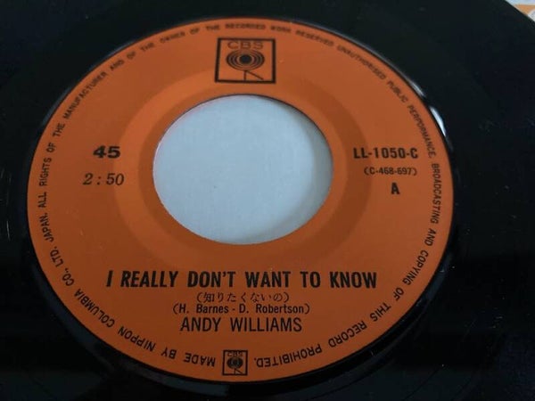Andy Williams “I Really Don’t Want To Know” 7” single uit Japan