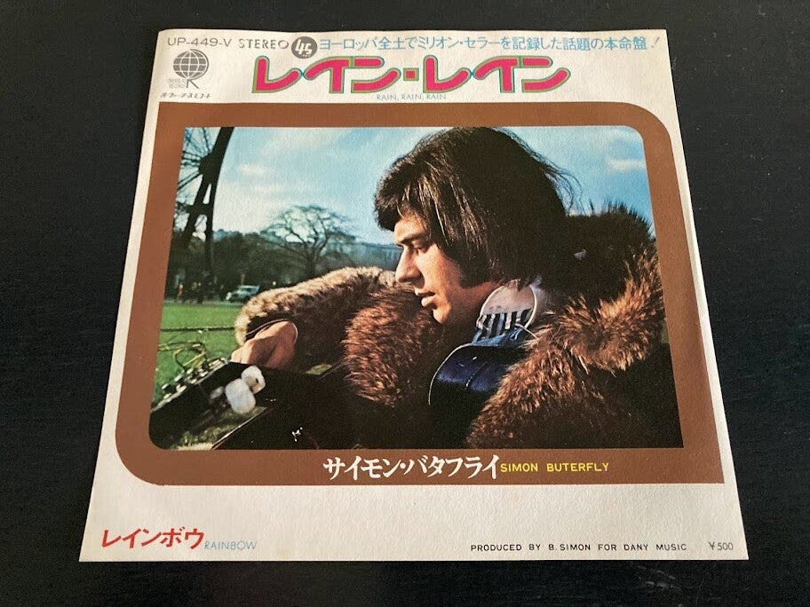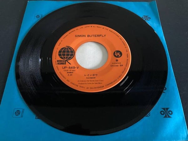 De single “Rain, Rain, Rain / Rainbow” van Simon Buterfly uit Japan, uitgebracht in 1973. Het gaat hier om de originele (eerste) release van de Japanse single met originele insert.