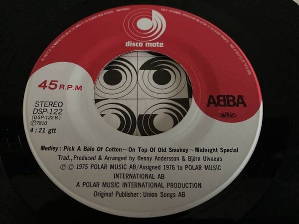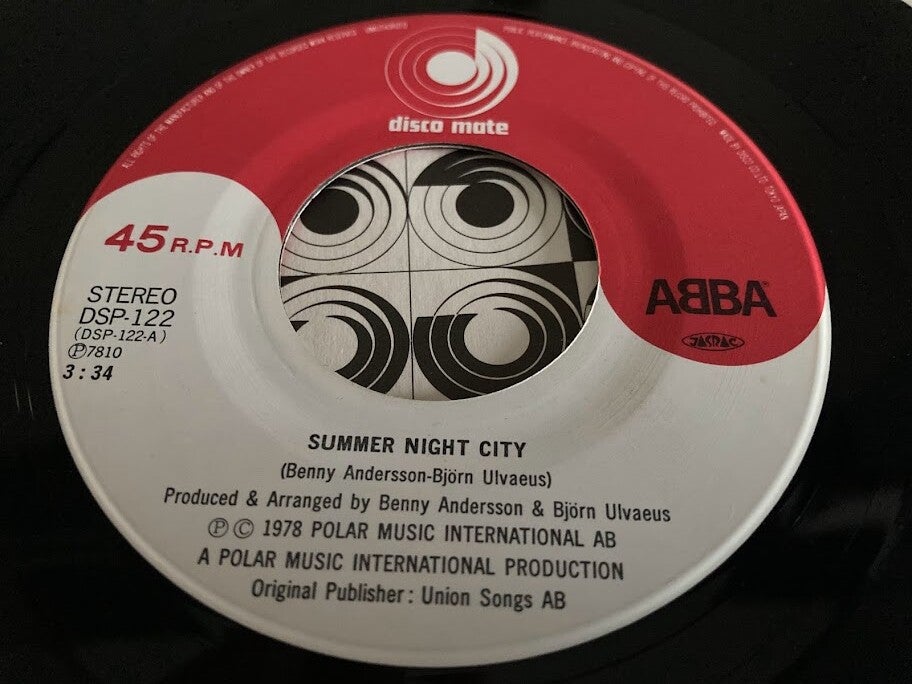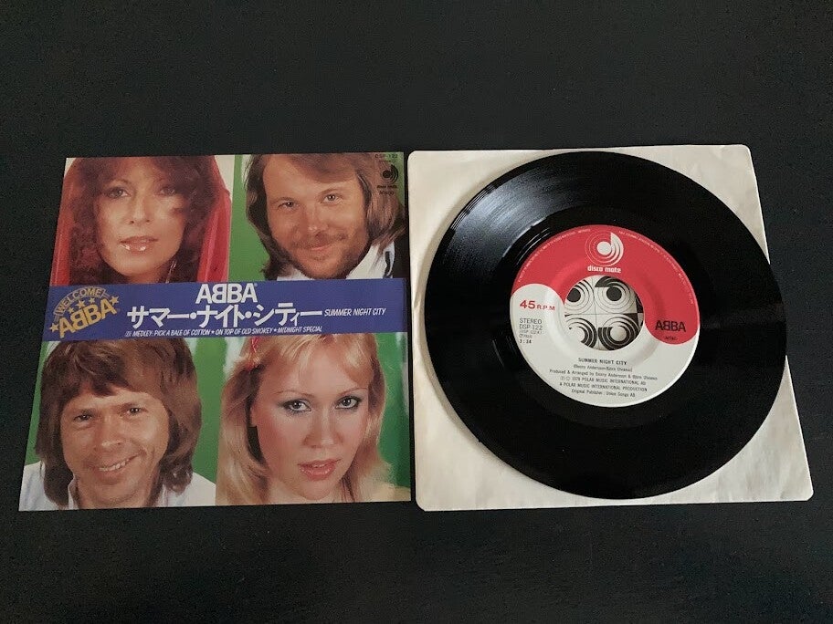 De single “Summer Night City / Medley” van Abba uit Japan, uitgebracht in 1978. Het gaat hier om de originele (eerste) release van de Japanse single met originele insert.