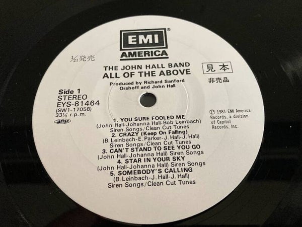 Het album “All The Above” van John Hall uit Japan met OBI en insert, uitgebracht in 1981. Het gaat hier om de promo, die niet te koop is geweest in de winkel. Het label is wit (anders dan de ‘gewone’ release) en er staan drie japanse tekens op het label (zie fotos), deze betekenen ‘promo’. Op de voorkant van de OBI zit ook nog een kleine promo sticker.