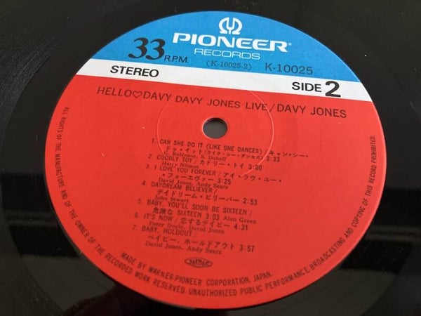 Davy Jones “Hello Davy - Davy Jones Live” LP uit Japan