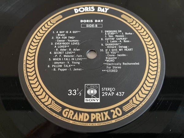 Het album “Grand Prix 20” van Doris Day uit Japan met OBI en insert, uitgebracht in 1977.