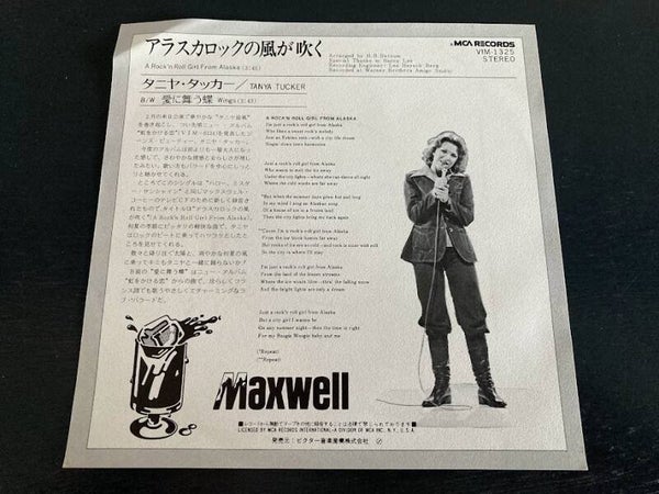 De single “A Rock ‘n’ Roll Girl From Alaska / Wings” van Tanya Tucker uit Japan, uitgebracht in 1977. Het gaat hier om de originele (eerste) release van de Japanse single met originele insert.