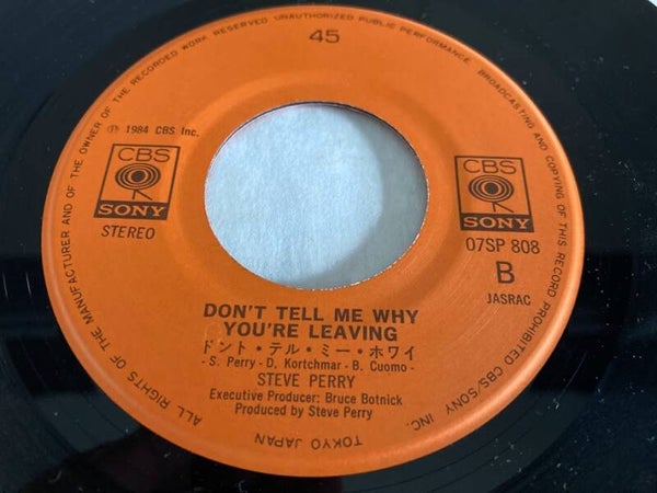 De single “Oh Sherrie / Don’t Tell Me Why You’re Leaving” van Steve Perry uit Japan, uitgebracht in 1984. Het gaat hier om de originele (eerste) release van de Japanse single met originele insert.
