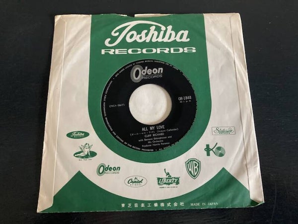 De single “All My Loving / Sweet Little Jesus Boy” van Cliff Richard uit Japan, uitgebracht in 1970. Het gaat hier om de originele (eerste) release van de Japanse single met originele insert van vier pagina’s.