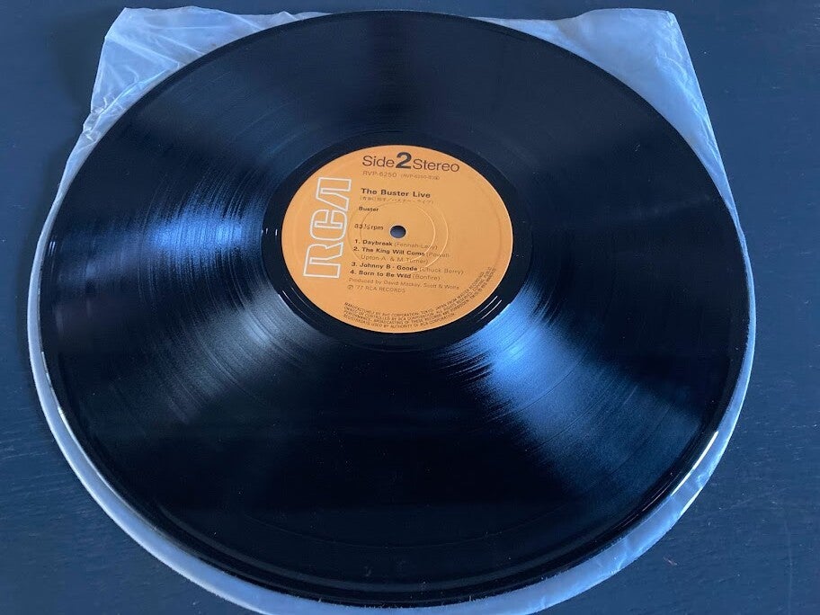 Het album “Live” van Buster uit Japan met OBI en insert, uitgebracht in 1977.