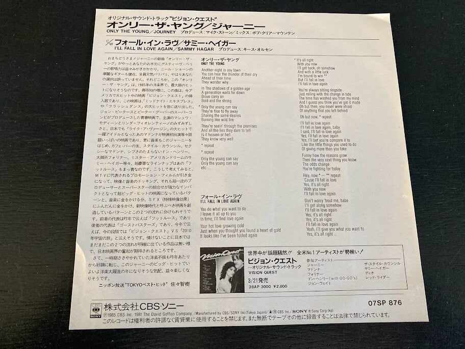 Soundtrack single van de film “Only The Young” met “Only The Young” van Journey en “I’ll Fall In Love Again” van Sammy Hagar uit Japan, uitgebracht in 1985. Het gaat hier om de originele (eerste) release van de Japanse single met originele insert.