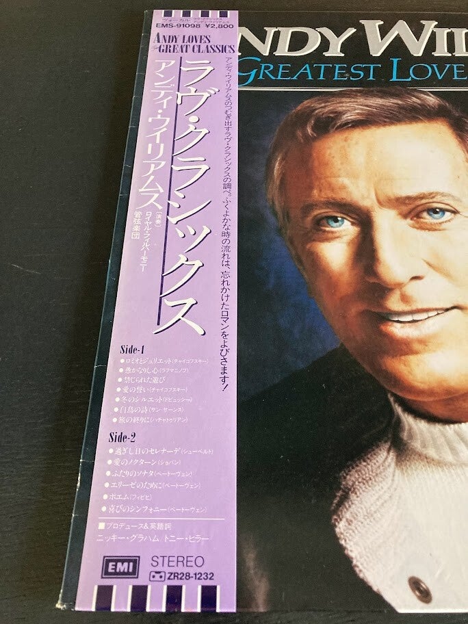Het album “Greatest Love Classics” van Andy Williams uit Japan met OBI en insert, uitgebracht in 1984.