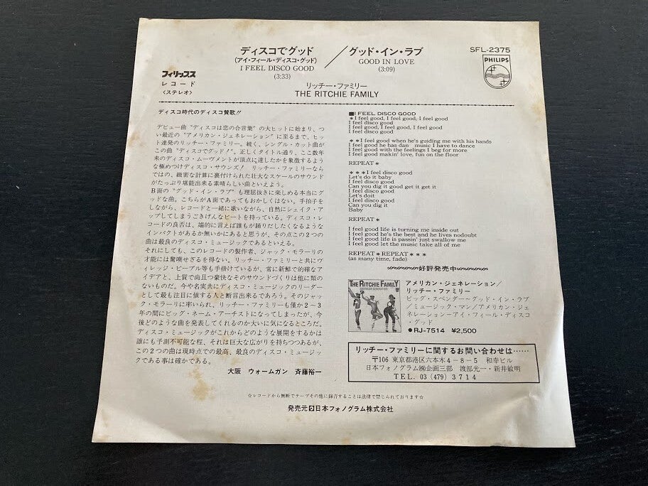 The Ritchie Family “I Feel Disco Good” 7” PROMO single uit Japan