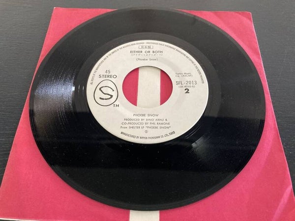 De single “Poetry Man / Either Or Both” van Phoebe Snow uit Japan, uitgebracht in 1974. Het gaat hier om de promo, die niet te koop is geweest in de winkel. Het label is wit (anders dan de ‘gewone’ release) en er staan drie japanse tekens op het label (zie fotos), deze betekenen ‘promo’.