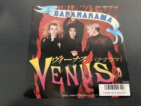 De single “Venus / White Train” van Bananarama uit Japan, uitgebracht in 1986. Het gaat hier om de originele (eerste) release van de Japanse single met originele insert.