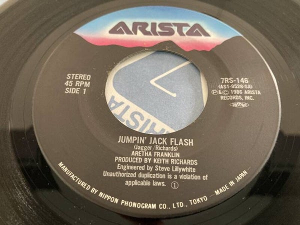 De single “Jumpin’ Jack Flash / Integrity” van Aretha Franklin uit Japan, uitgebracht in 1986. Het gaat hier om de originele (eerste) release van de Japanse single met originele insert.
