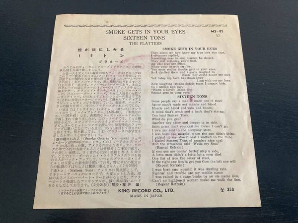 De single “Smoke Gets In Your Eyes / Sixteen Tons” van The Platters uit Japan.
